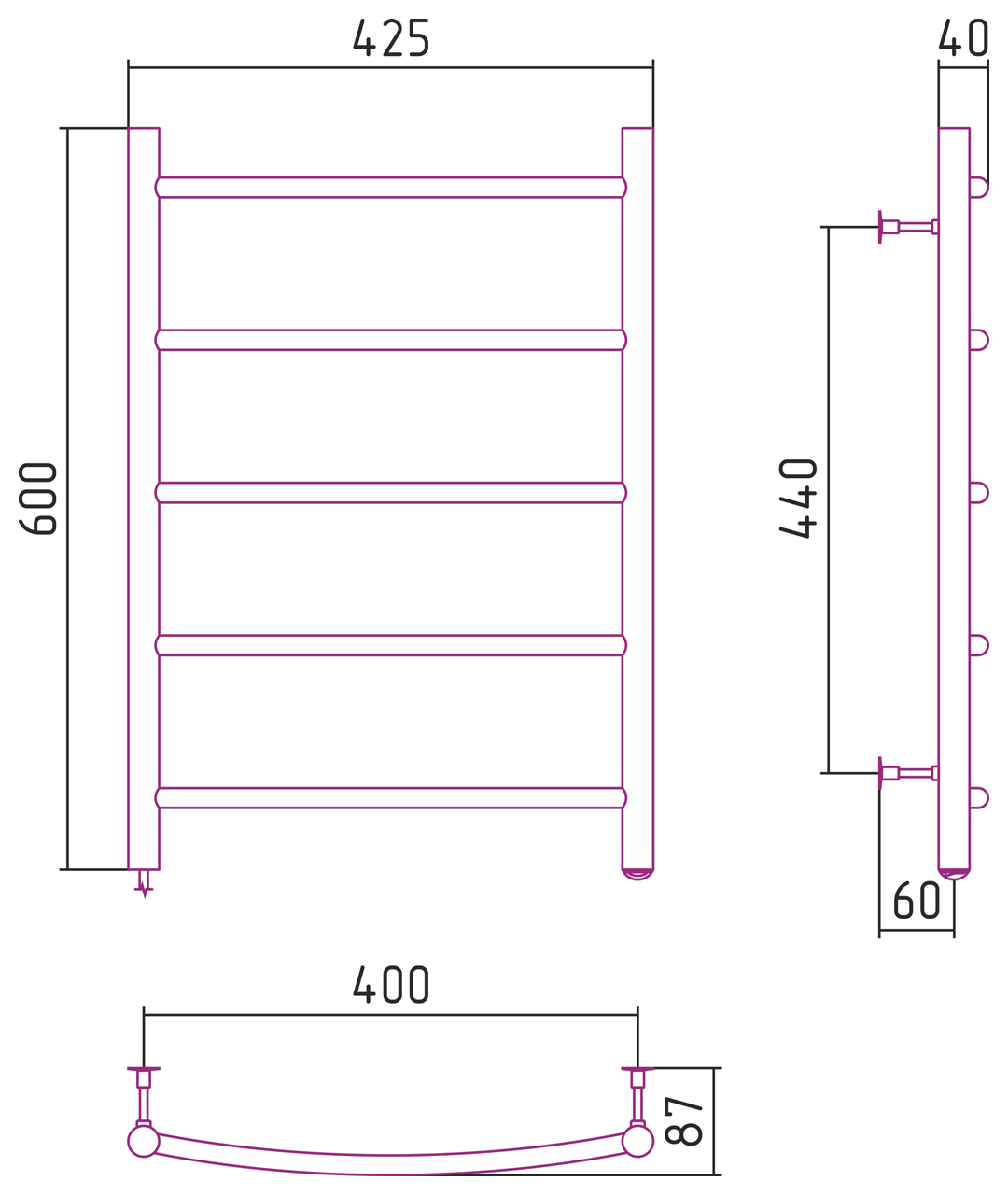 Полотенцесушитель электрический Стилье Формат №40 600x400