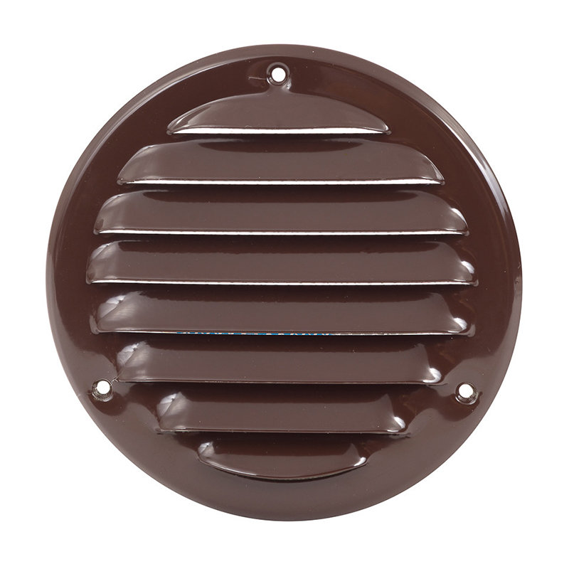 Металлическая круглая решетка, наклонные жалюзи,  цвет  коричневый.