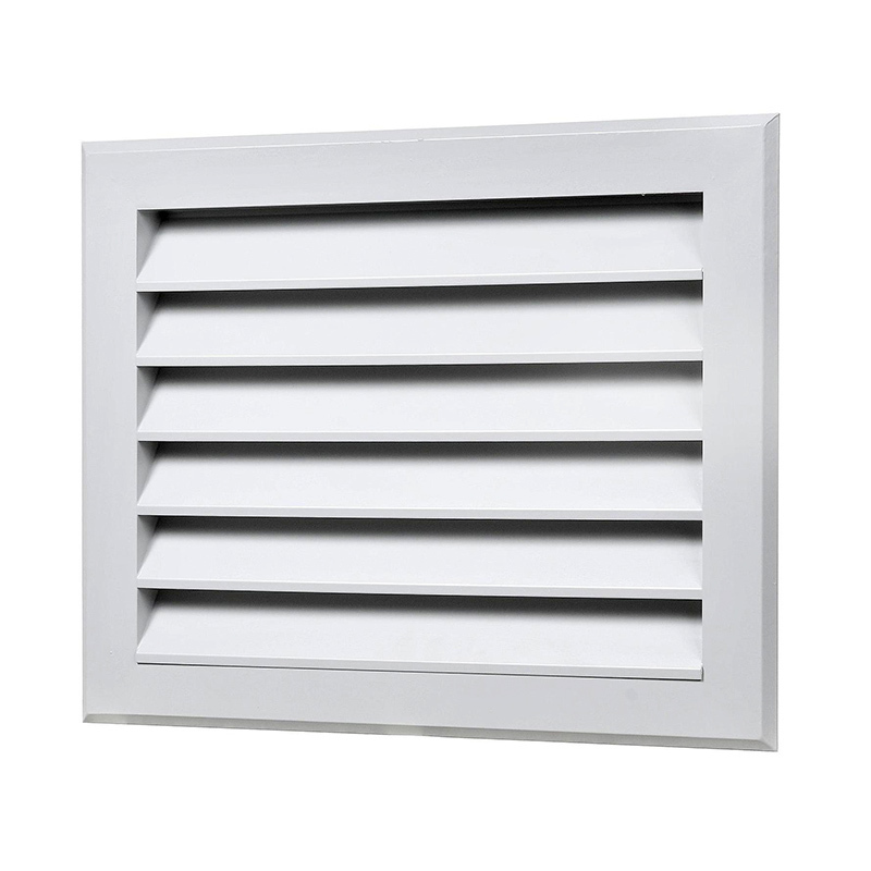 Решетки EAL - алюминиевые решетки для наружной установки, покрашены методом порошкового напыления в белый цвет (RAL 9016). Живое сечение составляет 41% от площади решетки. Жалюзи расположены под углом 45 градусов, что исключает попадание воды или снега через решетку.